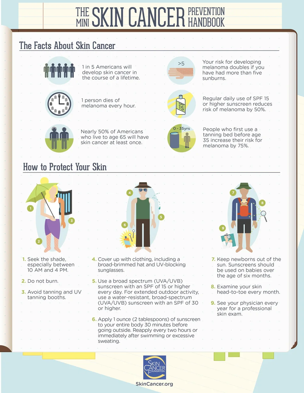 Detailed information on skin cancer prevention, including protecting children from the sun.